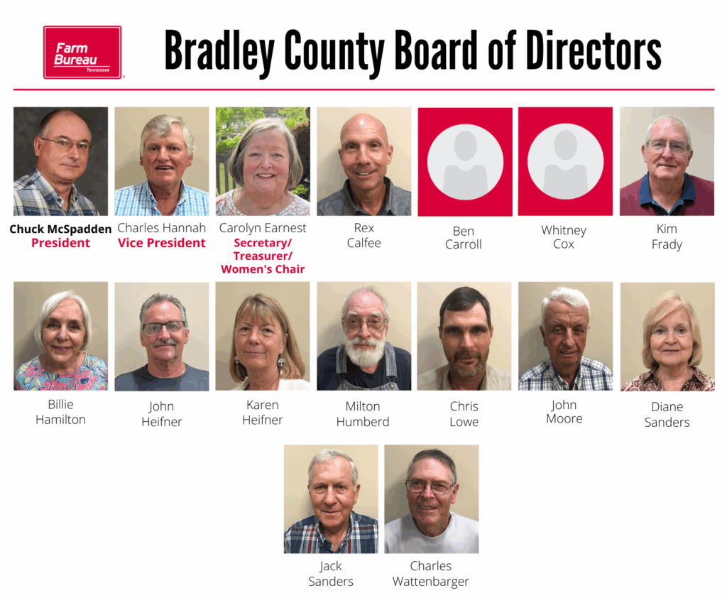 © Copyright 2025 Tennessee Farm Bureau Federation. All rights reserved. No portion of this Web site may be reproduced in whole or in part without written content.